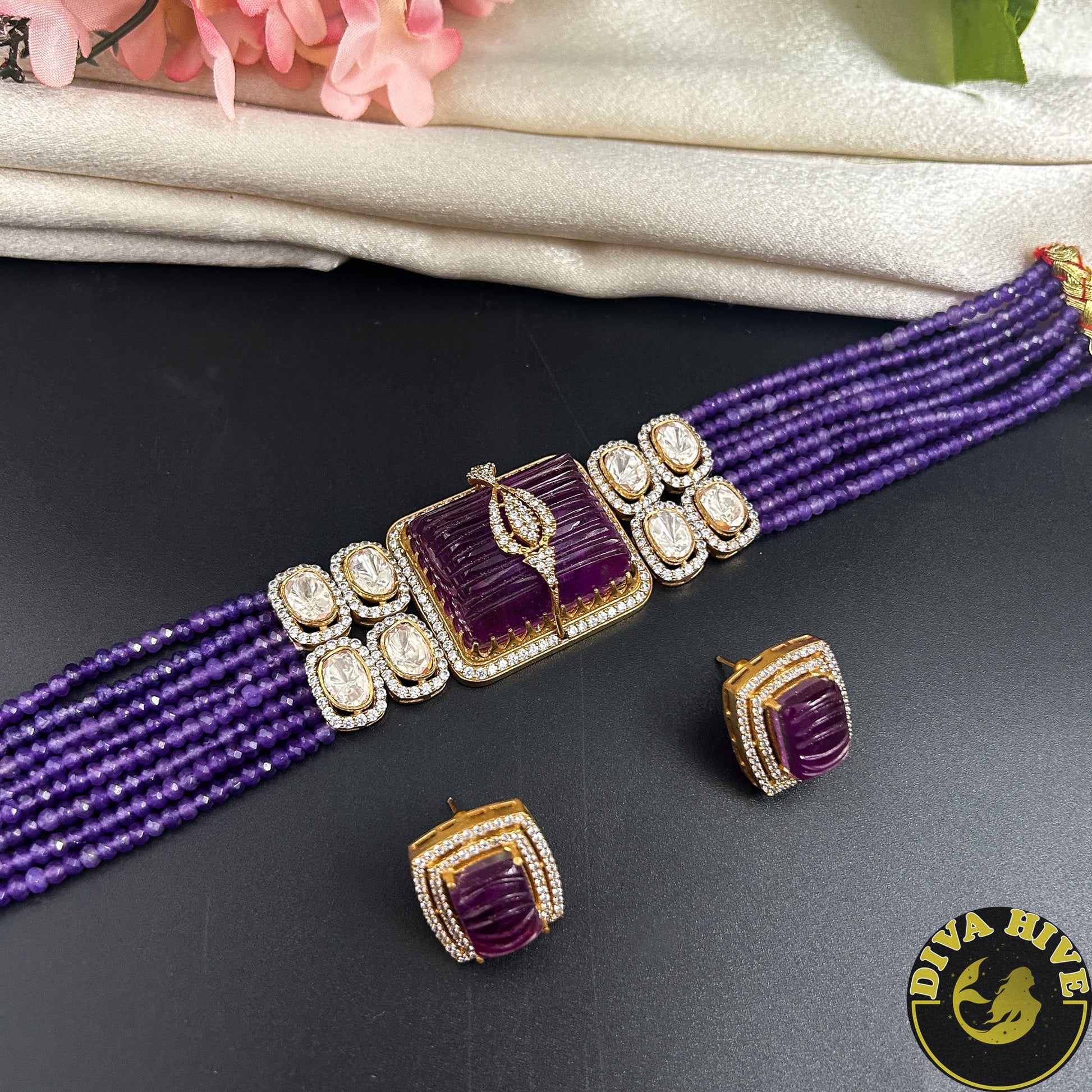 Turn heads and steal hearts with our breathtaking Moissanite Choker Set, drenched in regal charm. This designer piece features sparkling real moissanite stones .